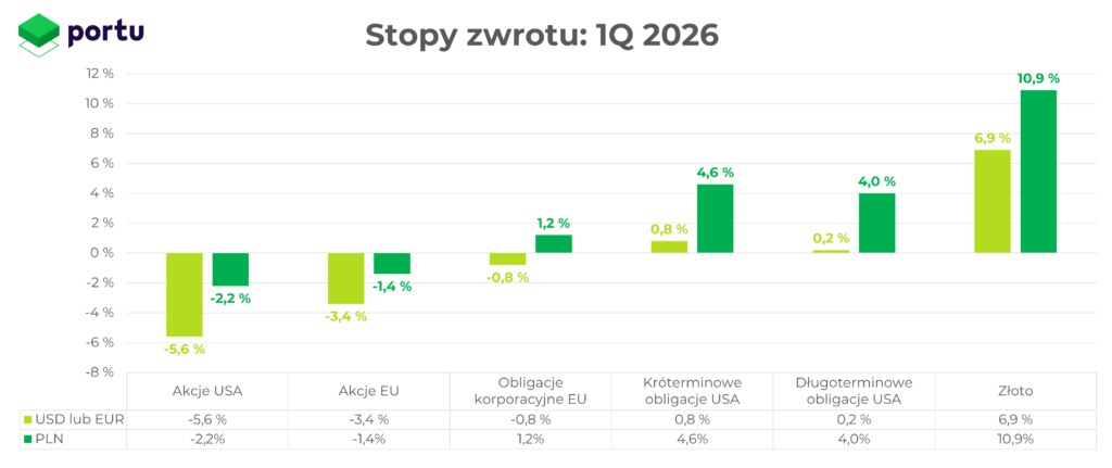 Podczas gdy rok 2025 zakończyliśmy w atmosferze optymizmu, pierwszy kwartał 2026 upłynął pod znakiem kilku wstrząsów geopolitycznych. Wpłynęły one nie tylko na ceny ropy, ale także na nastroje inwestorów. Nowe konflikty i spory handlowe zmieniły oczekiwania inflacyjne, a przynajmniej na ten rok również kierunek polityki monetarnej. Mimo to rynki pozostały relatywnie odporne.